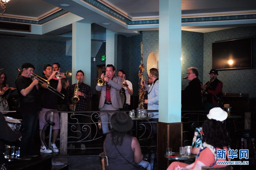 6月15日,一支樂隊在美國加利福尼亞州舊金山的一家酒吧內演奏。
