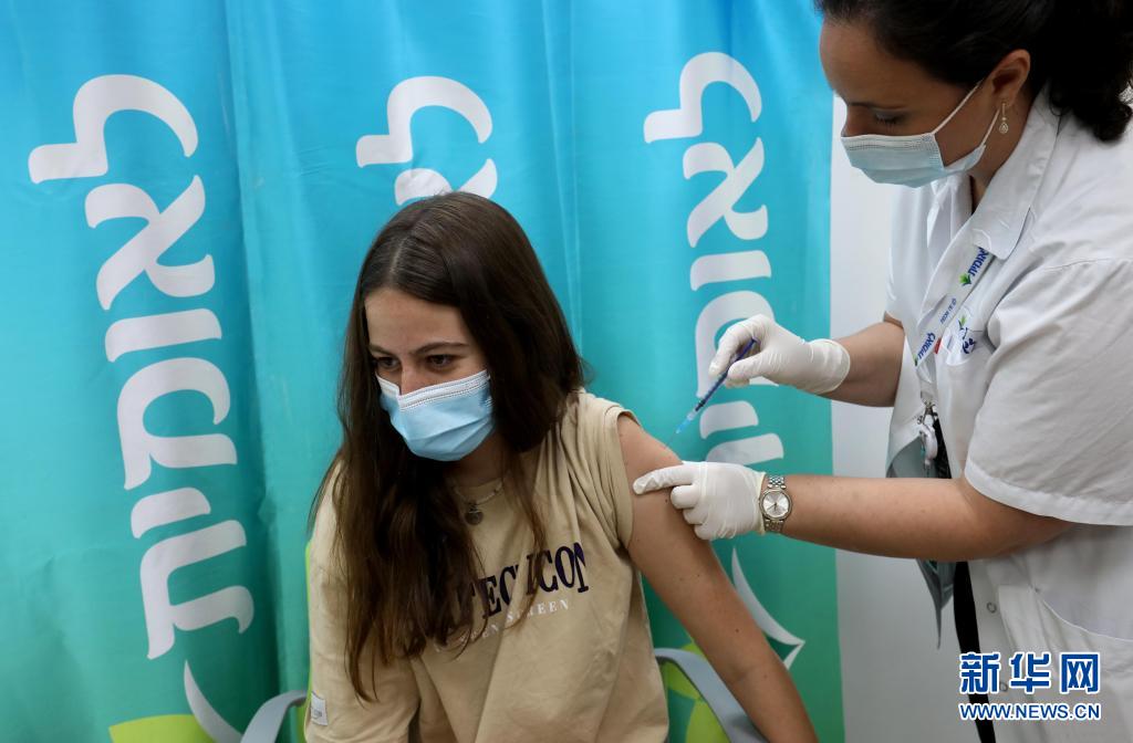 6月22日,在以色列中部城市莫迪因的一處醫療保健服務站內,一名未成年人接種新冠疫苗。