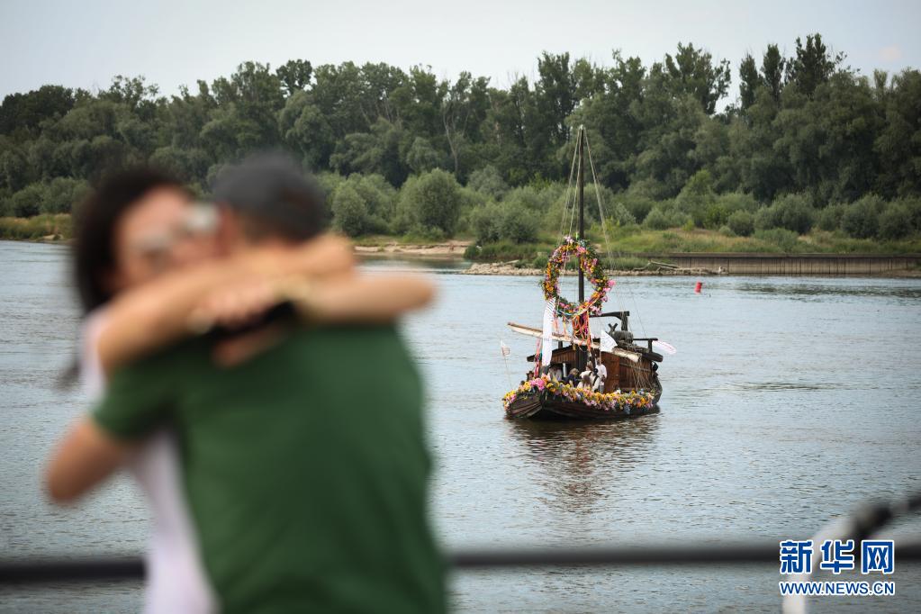6月26日,波蘭首都華沙舉行傳統的夏日文化娛樂活動時,一對情侶在河邊擁抱。