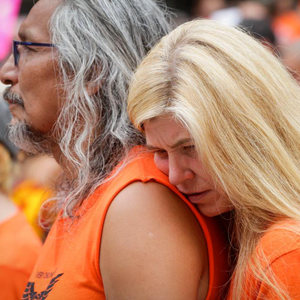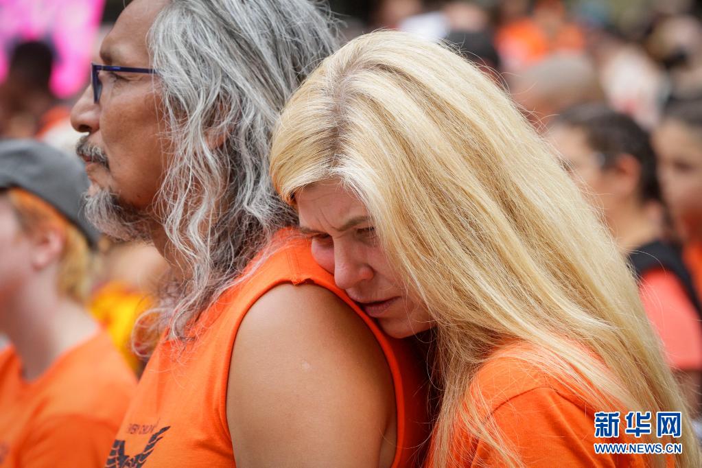 當天是加拿大日,上千名抗議者在溫哥華集會,悼念加拿大在強制“同化”原住民過程中遭到殘害的兒童,呼吁取消加拿大日的慶祝活動。