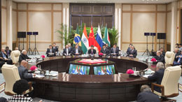 習近平在歡迎辭中指出,今年以來,金磚國家合作保持良好發展勢頭,領域進一步拓展,成果進一步顯現。金磚國家是新興市場國家和發展中國家的領頭羊,也是二十國集團重要成員。