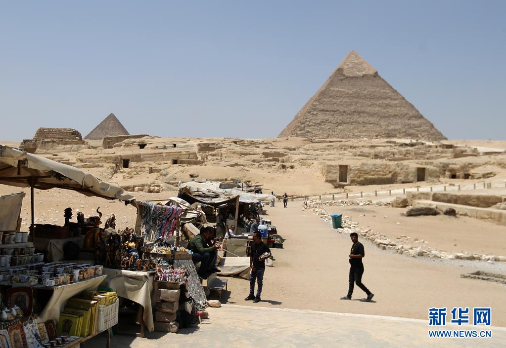 這是4月26日拍攝的位于埃及吉薩省金字塔群景區的攤位。