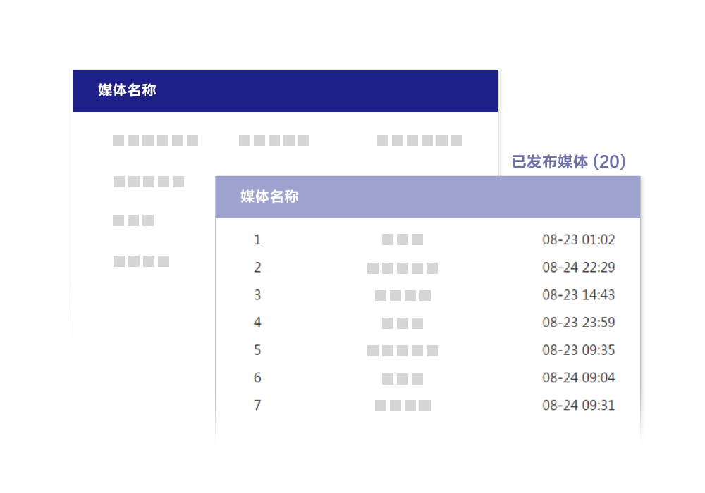 指令下發稿件實時監控展示,左側代表未發布媒體,右側代表已發布媒體。監測媒體用戶可以主動配置。